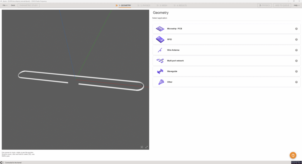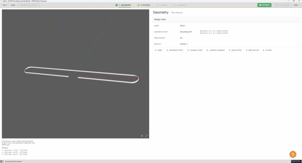 In this guide we will take a look at how to build a complete folded dipole antenna simulation from scratch in CENOS Radio Frequency app, using its built-in geometry editor, FreeCAD.