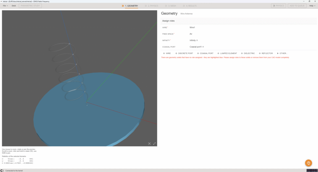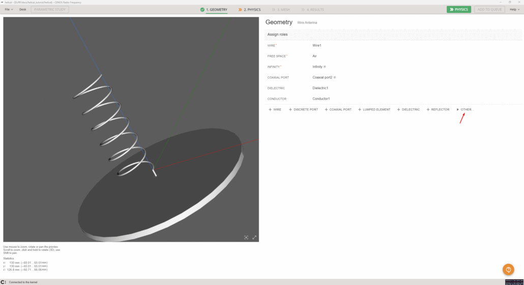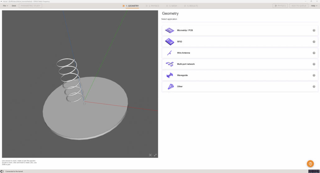 In this guide we will take a look at how to build a complete helical antenna simulation from scratch in CENOS Radio Frequency app, using its built-in geometry editor, FreeCAD.