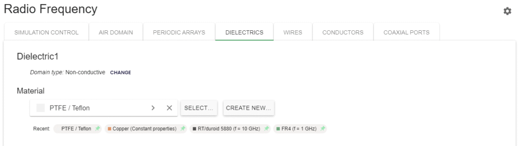 We select PTFE/Teflon which is within the CENOS RF Materials Library.