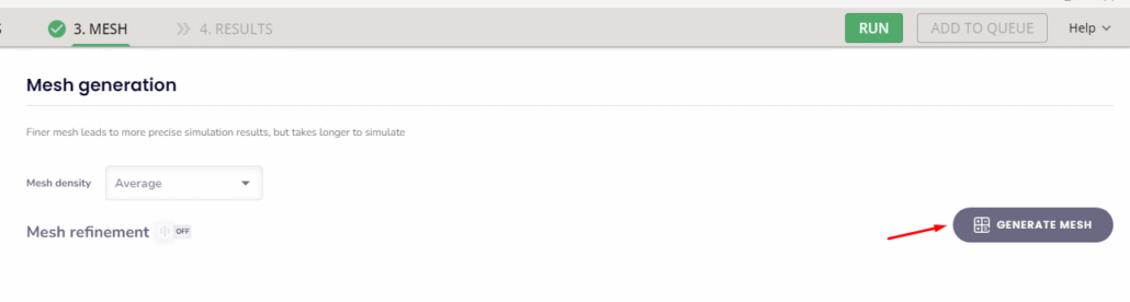 Once the mesh has been generated, RUN button will become active and you will be able to run the simulation!