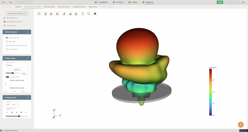 When calculation is done, results will automatically open in Results tab. Congratulations, you have successfully finished a helical antenna simulation!