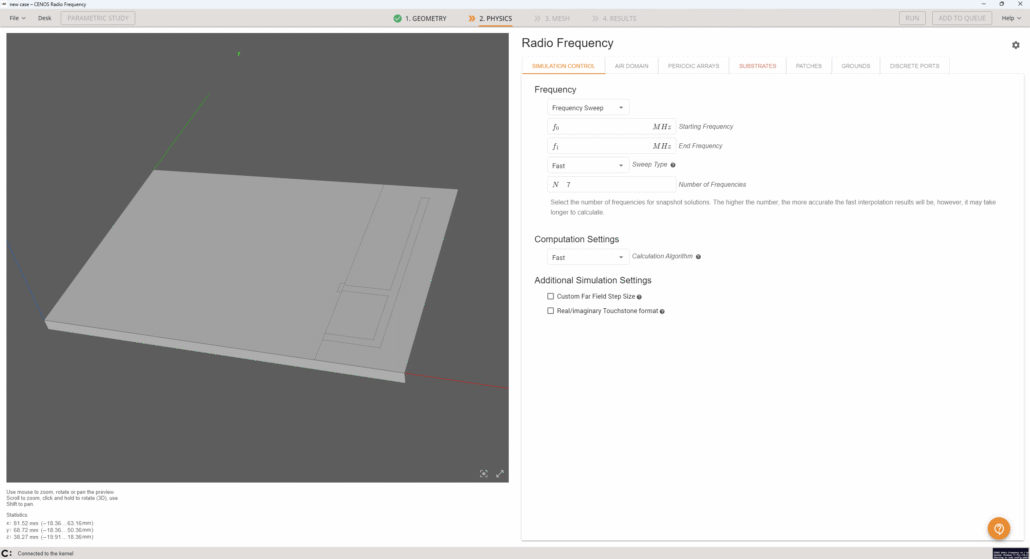 In this article, we will learn how to set up the simulation of an IFA antenna using the CENOS Radio Frequency simulation software.