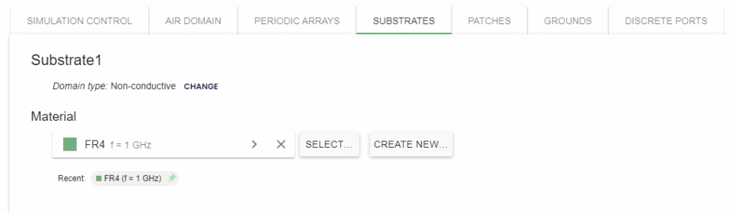 Select the FR4 material that is predefined in the CENOS RF material library.