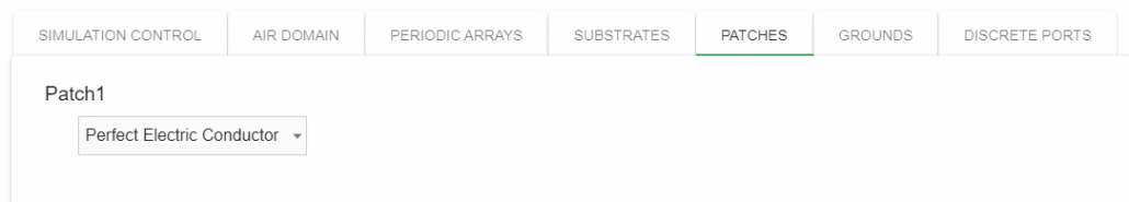 You will notice that the patch is automatically set to Perfect Electrical Conductor, for this simulation we will leave this setting.