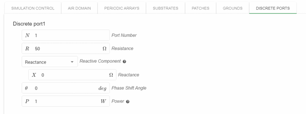 Finally we have the port. For this particular case we will leave the default input impedance of 50Ω.