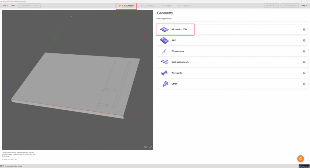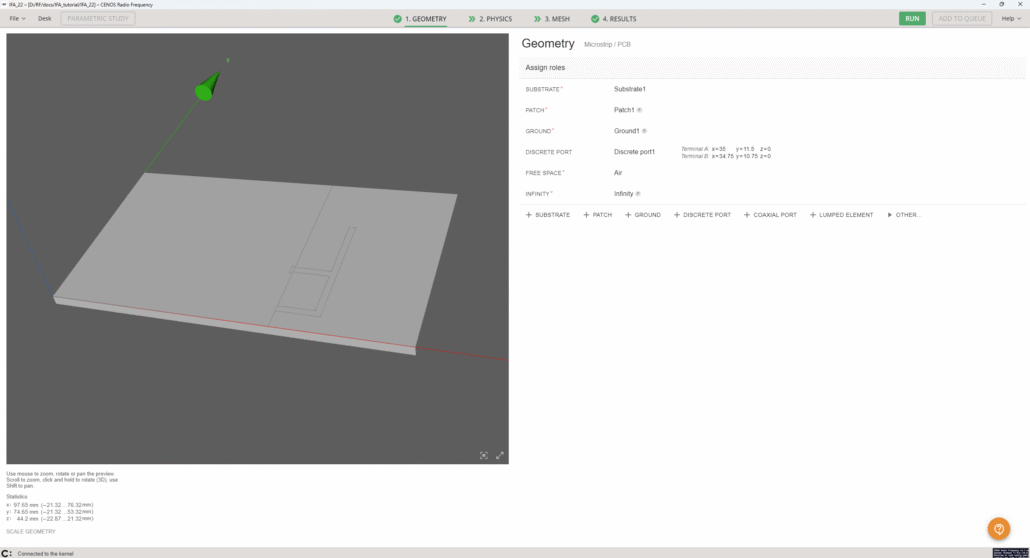 Select STEP files of your antenna and click Open to import them into CENOS.