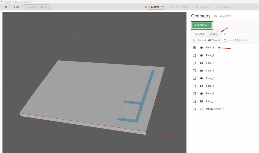 Continuing with the patch, since for this example we decided to flatten the thin conductors, it will be necessary to switch to the Faces tab when selecting this role. To continue with the process just click on ASSIGN Patch.