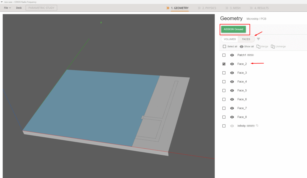 For the ground plane, the procedure will be the same as for the patch! Select the role and switch to the Faces tab. You will be able to choose the corresponding face and then click on ASSIGN Ground.