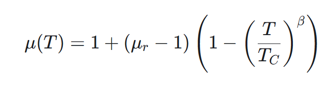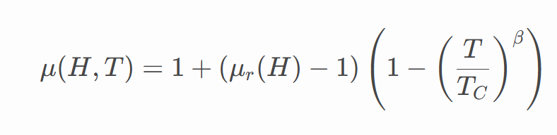 To account for temperature dependence, following function for relative magnetic permeability μ is used [1] :