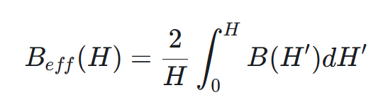 Here H is the amplitude of the harmonic field, and B(H′) is the original magnetization curve. Figure below shows magnetic flux density B at certain point in magnetic material. In transient calculation signal is not sinusoidal, and contains higher harmonics. For applications where higher harmonics can be neglected (also induction heating), effective B-H curve is suggested as it requires less computational resources. Especially important for induction heating applications – total power in both methods is very similar (differences below 5% in [5]).