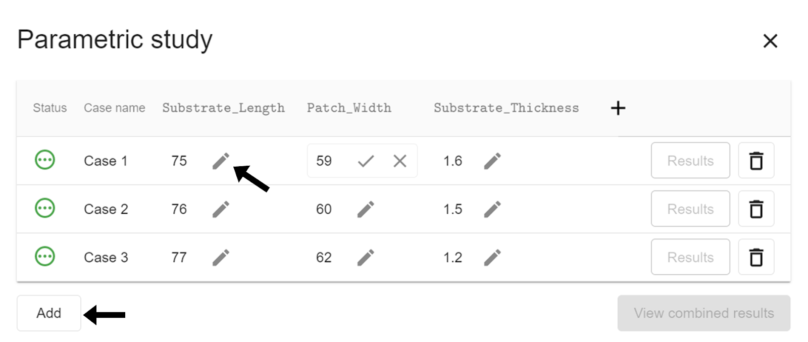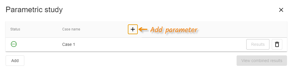 The parameters you have previously defined will appear in a new window, you can add one or more parameters! You can also add as many cases as you need to simulate – just click Add and a new case will be created.