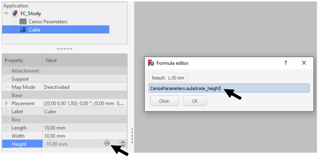 To use these parameters, click the Formula Editor button in the value field and then enter Cenos.Parameters.name.