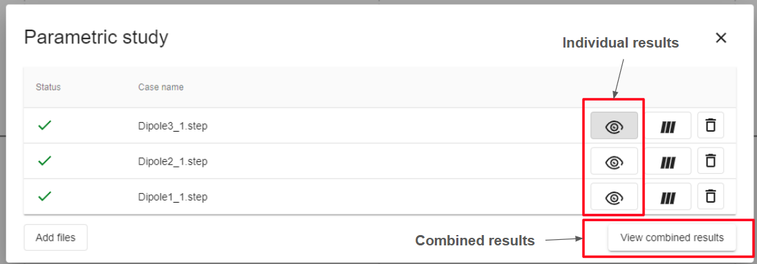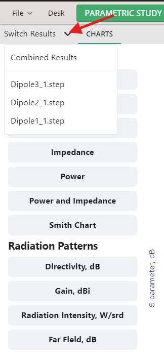 • In the upper-left corner, locate the Parametric Study box. Here, you can choose to open either the individual results for each case or the combined results