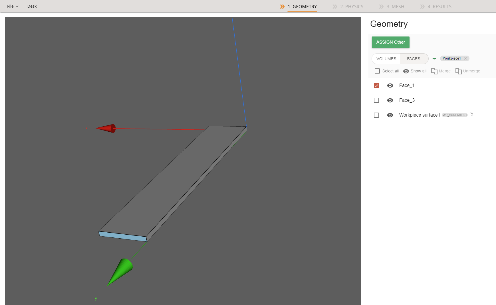 Then select one of the unassigned workpiece surface faces and click ASSIGN Other. Do the same for the other face as well.