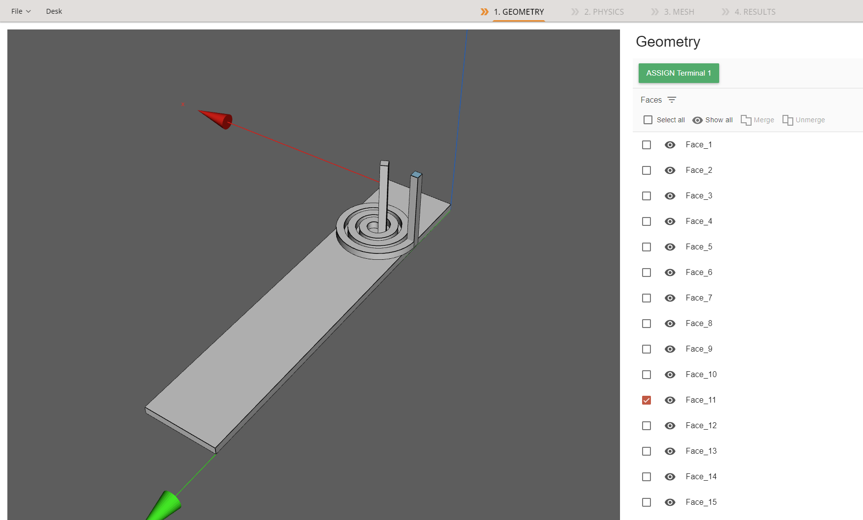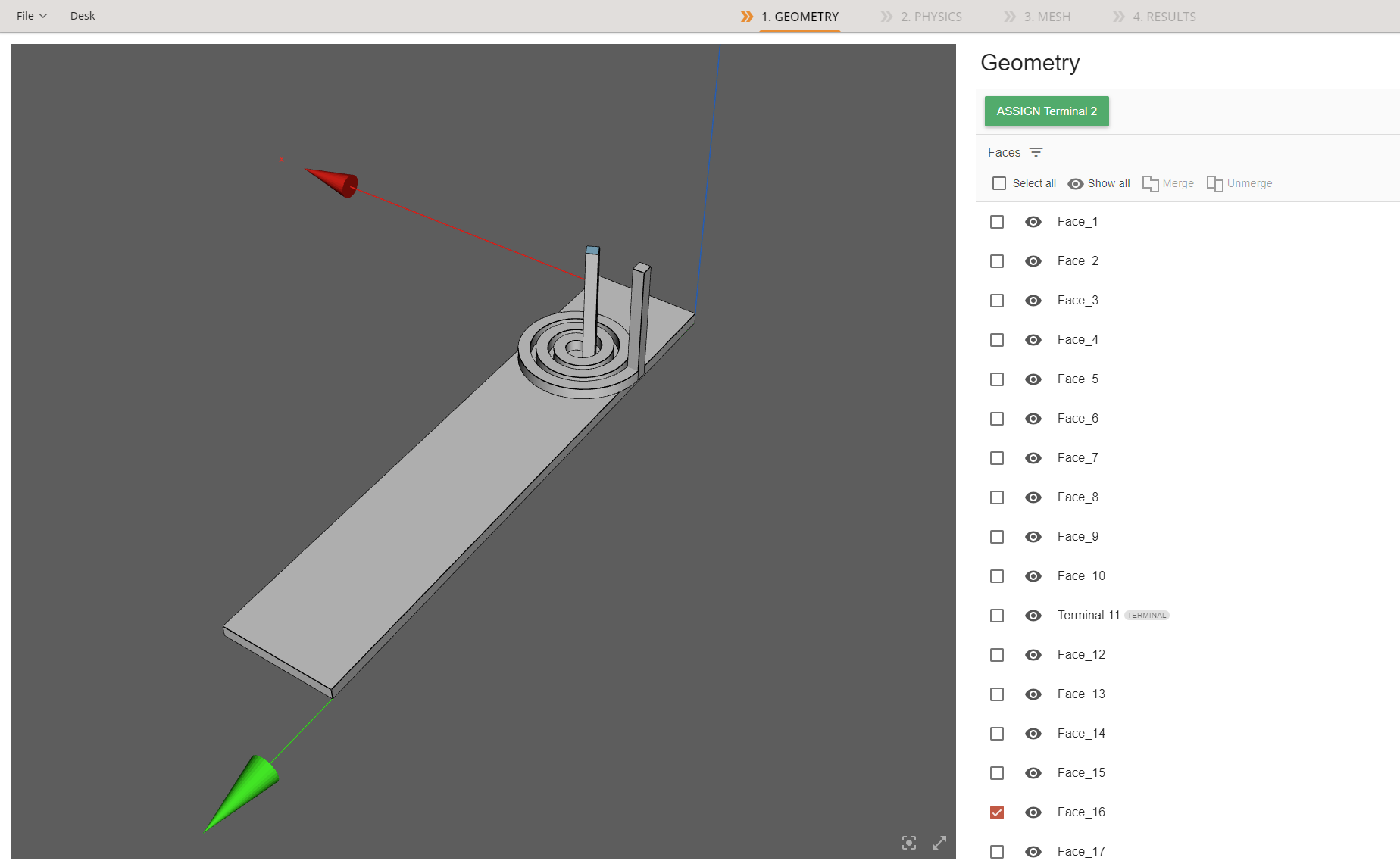 Then select the TERMINAL1 group and select one of the inductor terminals. It does not matter which terminal you assign as 1 and which one as 2.