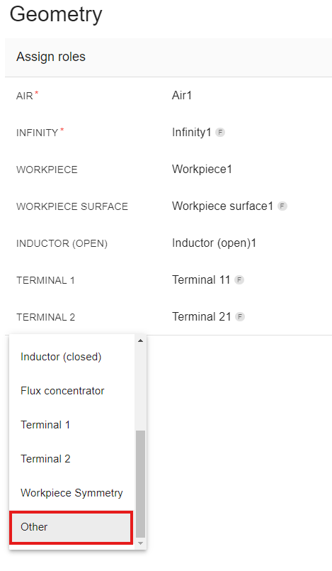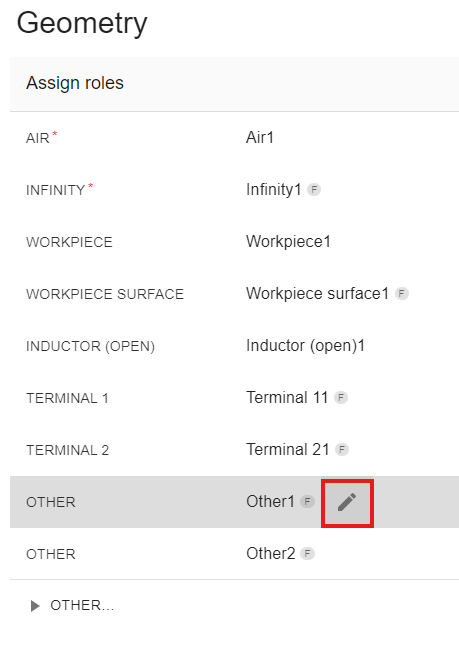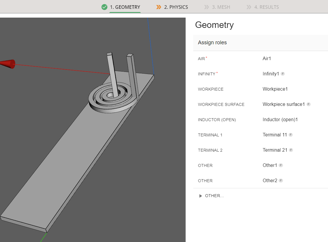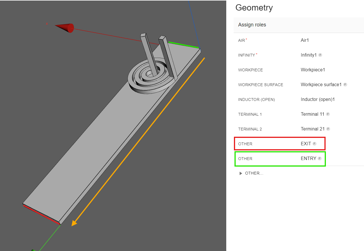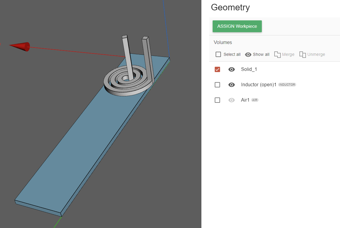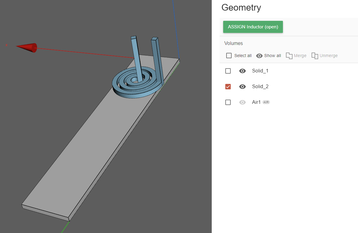 Next, to assign the role of the inductor, click on the INDUCTOR (OPEN) group and choose the correct solid, just as before with air.