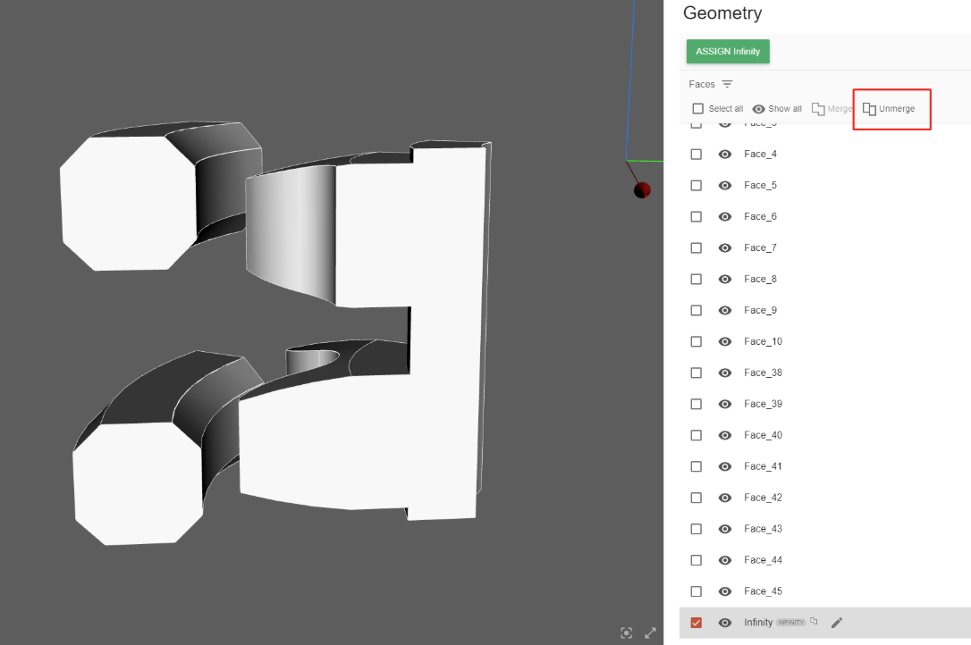 Next, go to INFINITY role again and select the three air faces that are not on the cut plane. All three of them will be selected together.