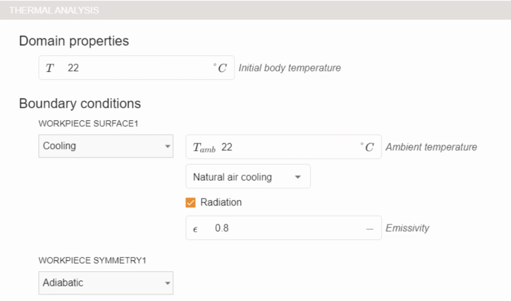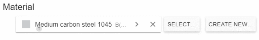 Select WORKPIECE1 from Domain bar. For Material click SELECT… and choose Medium Carbon Steel 1045 (B(H), t depend).
