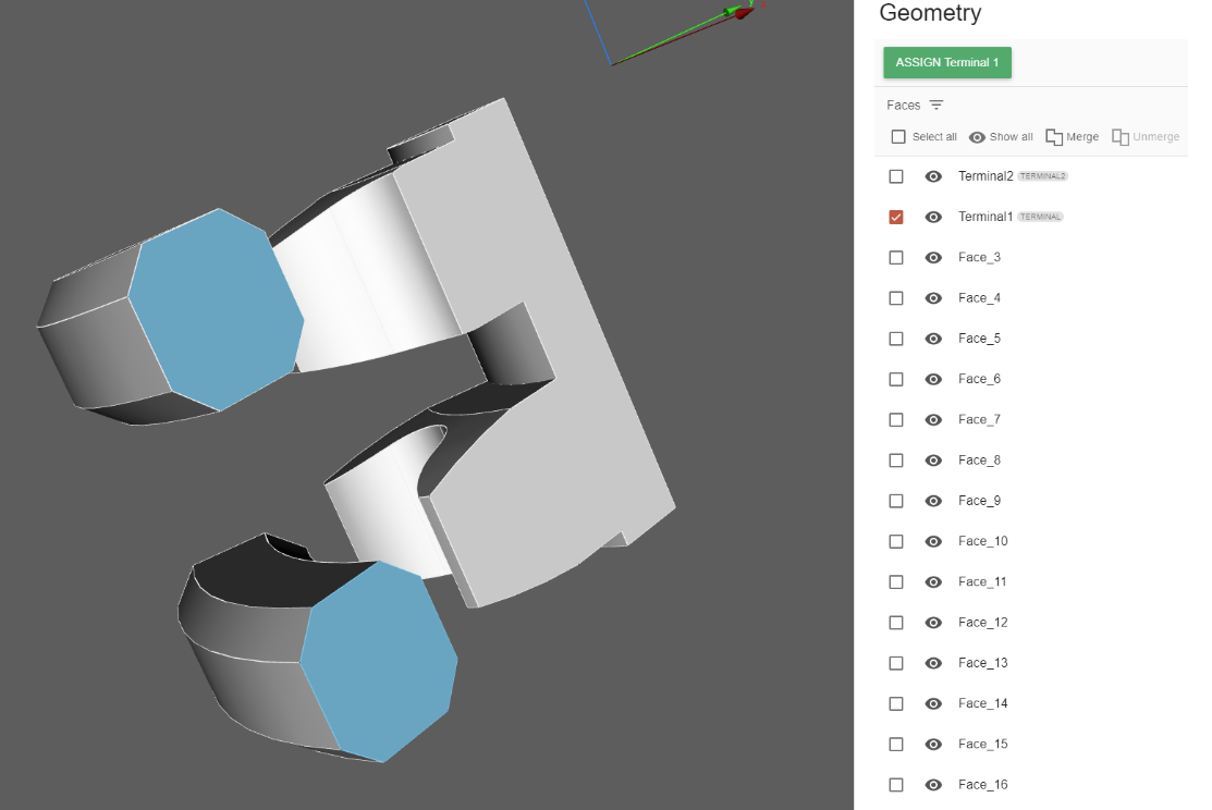 Select your inductor terminals – for a slice case those are the inductor faces where the geometry has been cut.