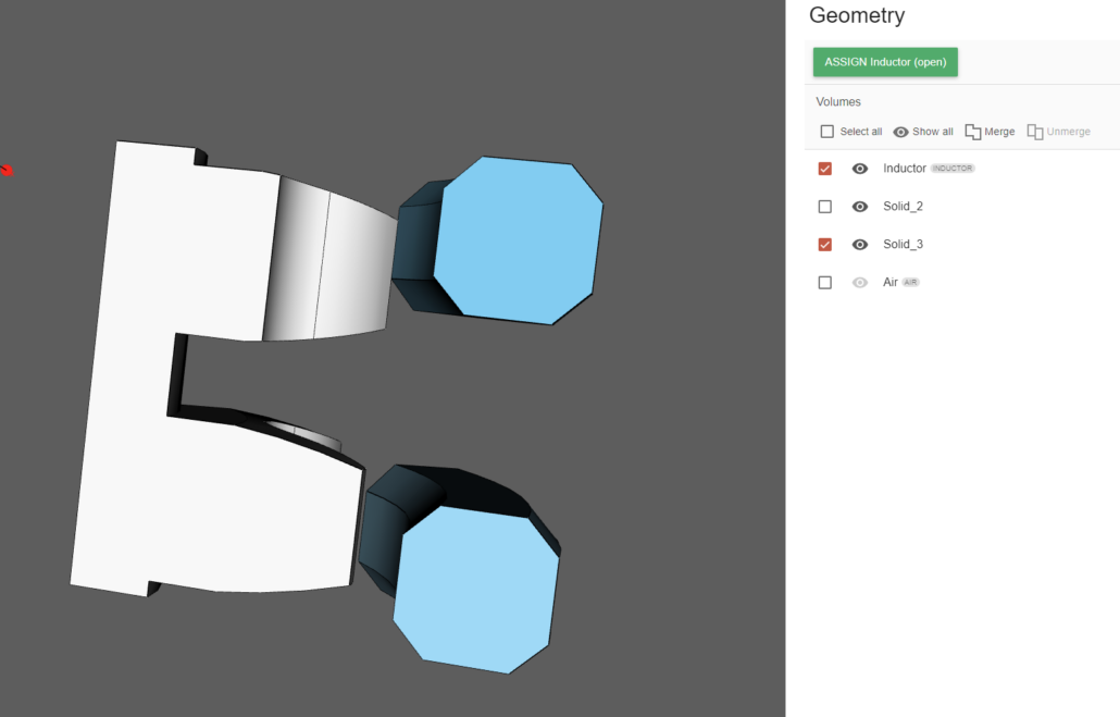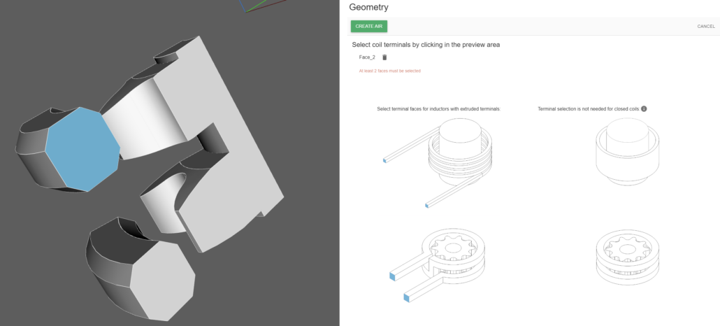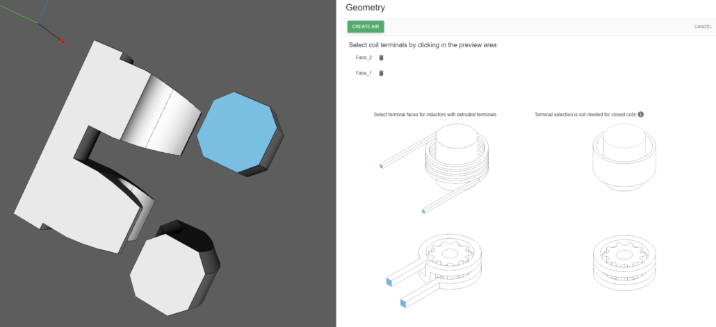 In this case, since the full inductor had 2 windings and has been cut, we can select either all 4 faces, or only 2 faces – both cut faces for one of the windings: