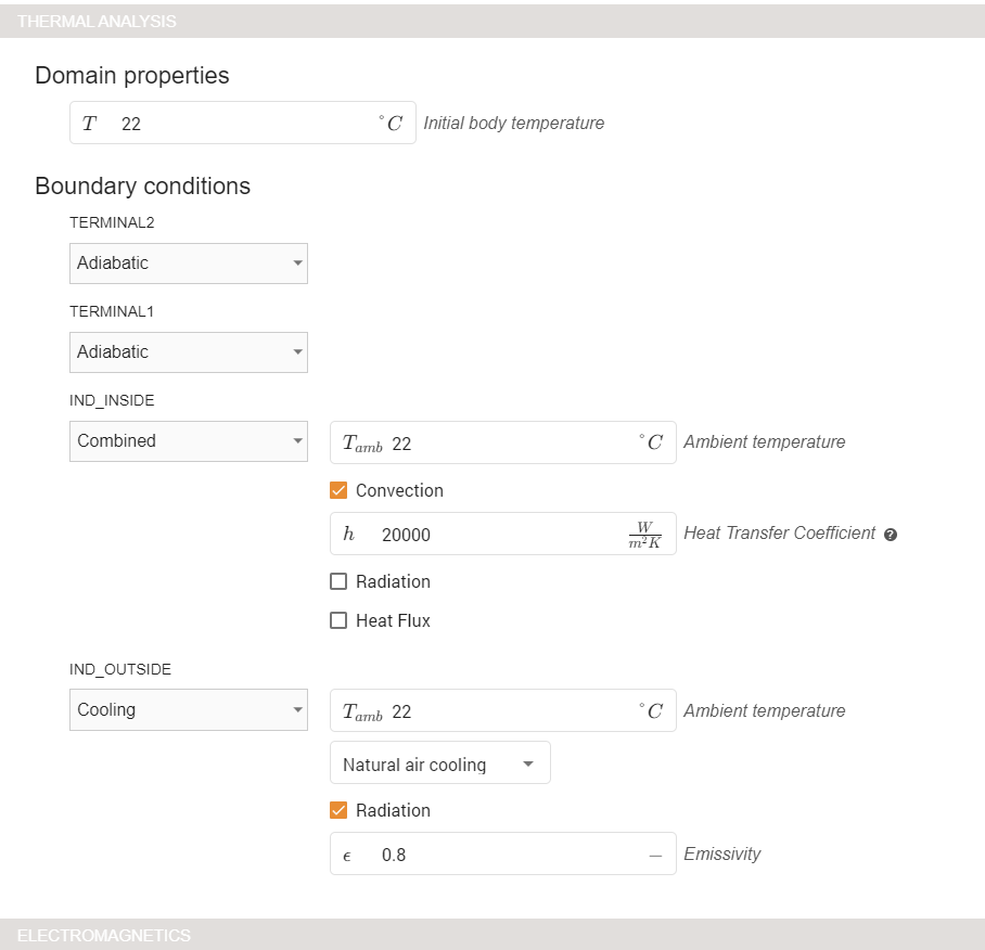 When this is done, you will see a THERMAL ANALYSIS section appear where you need to specify the boundary conditions.