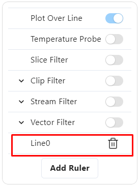If you decide that you do not want to see the created line, you can click on its name in the Plot Over Line popup window. If you want to delete the line permanently, you can click on the trash icon on the right side – under all the filters you will see this new line appear and you can delete it from there.