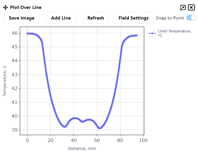 When enabling the filter, you will see a new window popup. In this window you can save the created plot image, click ‘Add Line’ when you want to create a new line, you can Refresh the view, change the Field Settings and toggle the snap to point option.