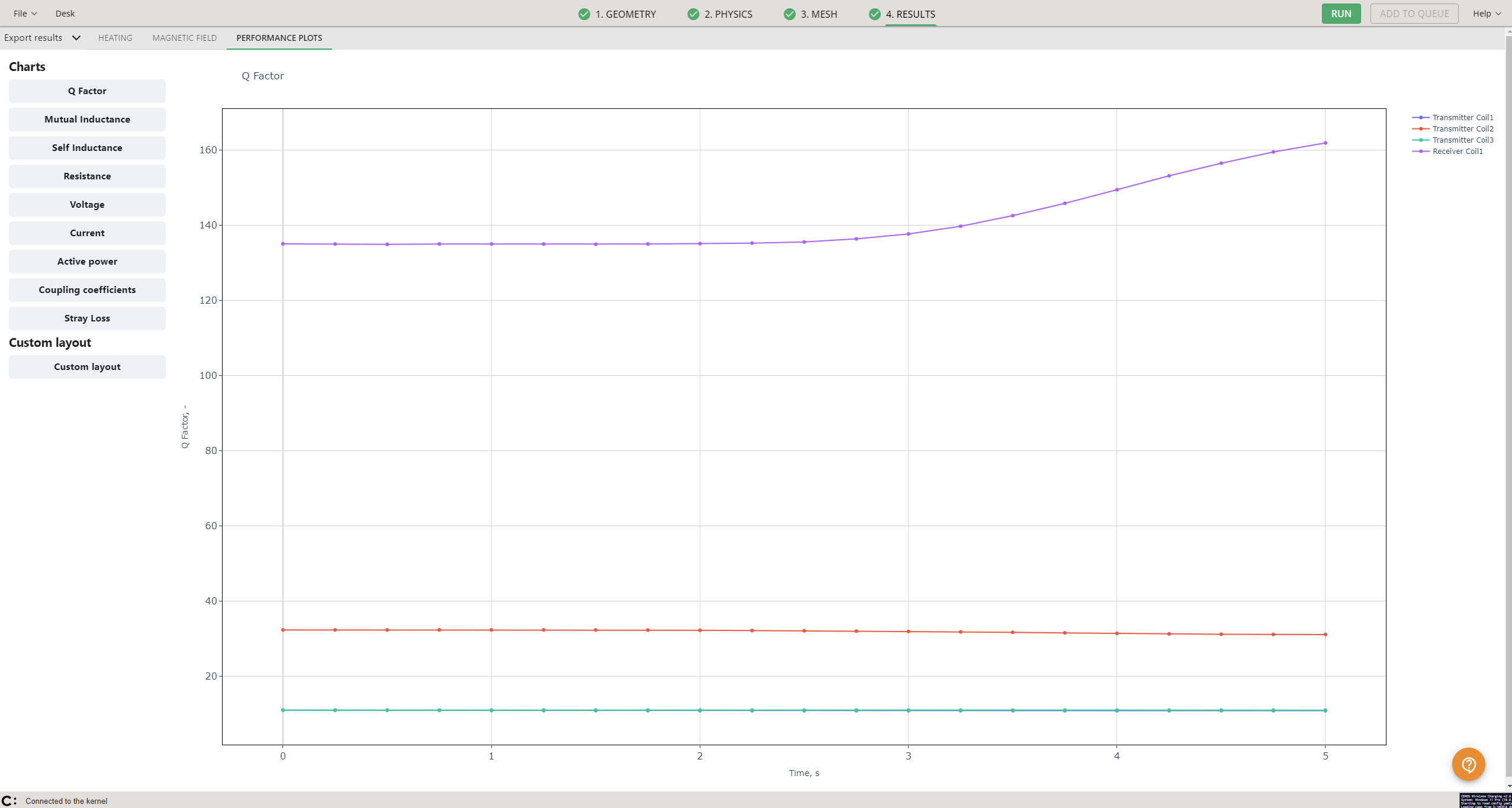 The last tab in CENOS Results Viewer contains all kinds of performance plots. When you open it, the first plot that opens is the Q Factor plot: