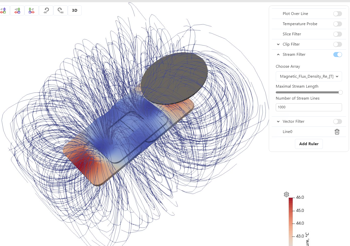 - MAGNETIC FIELD: This tab automatically has Stream filter enabled to show the magnetic field lines.