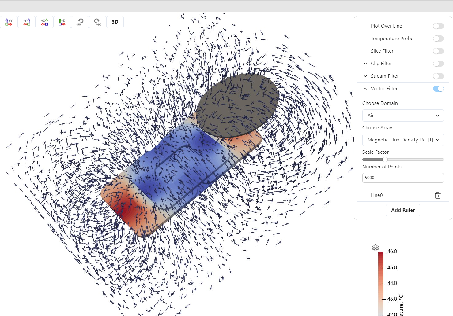 For this filter you can also choose the domain – any of the solids. Each domain can have different results displayed with the vectors, for example, the air domain will have magnetic flux density, however, the inductor will have current density.